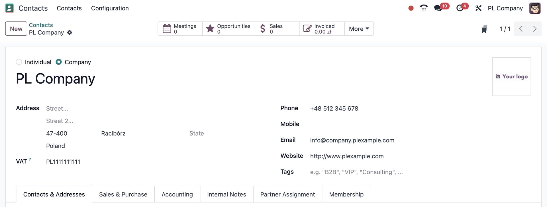 NIP: PL1111111111 - Ustaw jako VAT dla PL Company