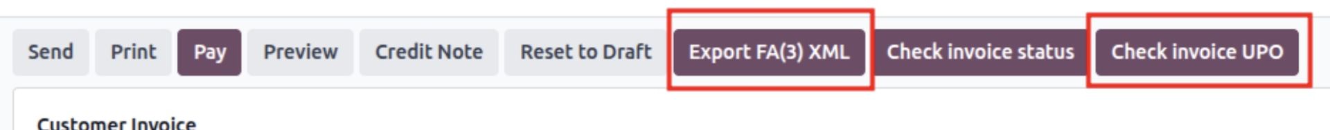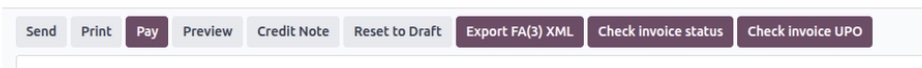 Po wysłaniu zobaczysz zarejestrowany w odoo numer KSeF faktury. Teraz możesz sprawdzić status, klikając Check Invoice Status.