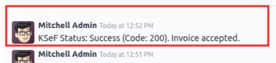 W chatterze pojawi się komunikat potwierdzający, że faktura została poprawnie zaakceptowana przez KSeF.