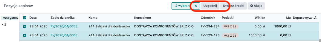 Wskaż zapisy które chcesz uzgodnić i kliknij w polecenie UZGODNIJ.